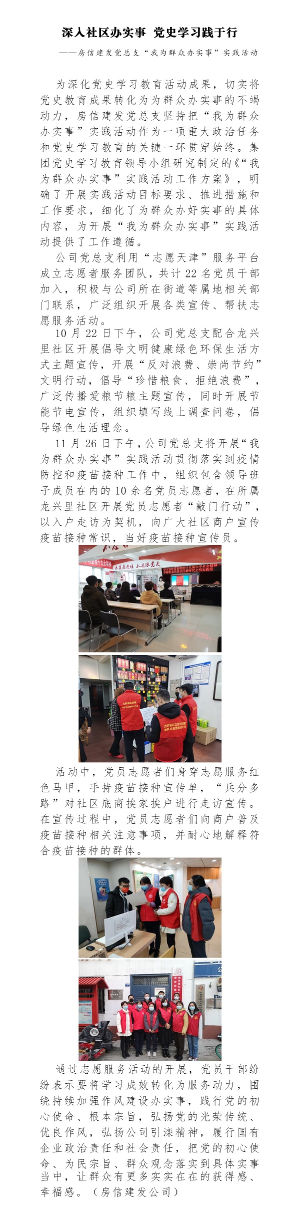 深入社區(qū)辦實事 黨史學(xué)習踐于行