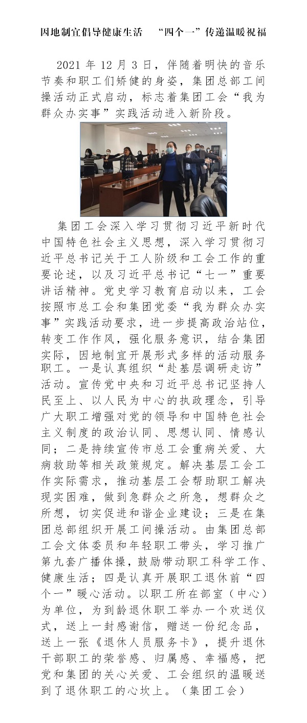 因地制宜倡導健康生活 “四個一”傳遞溫暖祝福