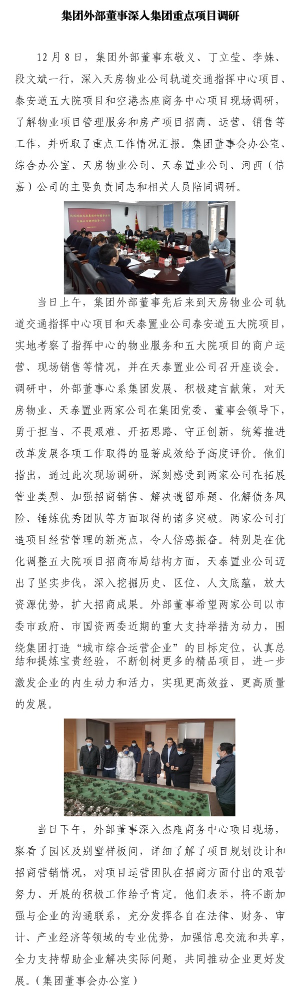 集團(tuán)外部董事深入集團(tuán)重點(diǎn)項(xiàng)目調(diào)研