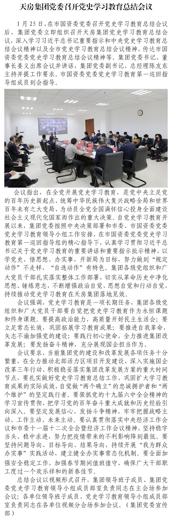 天房集團(tuán)黨委召開黨史學(xué)習(xí)教育總結(jié)會(huì)議