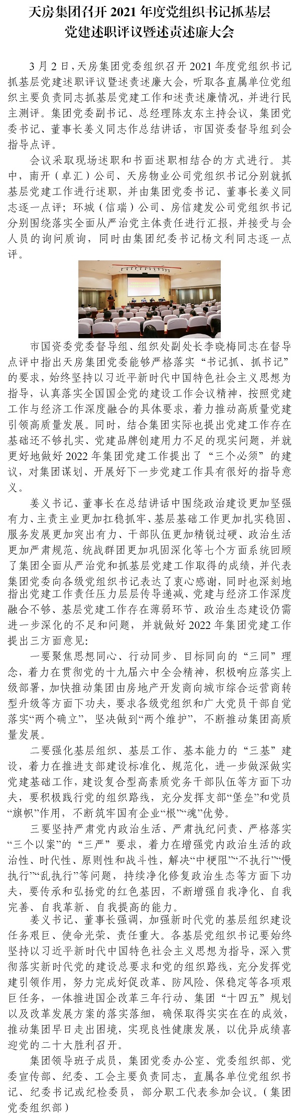 天房集團召開2021年度黨組織書記抓基層黨建述職評議暨述責述廉大會