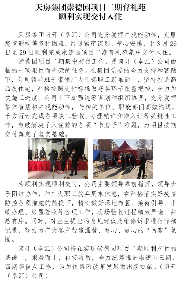 天房集團崇德園項目二期育禮苑順利實現(xiàn)交付入住