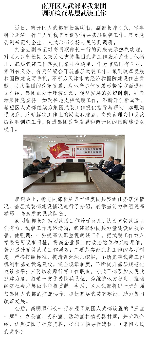 南開區(qū)人武部來我集團(tuán)調(diào)研檢查基層武裝工作
