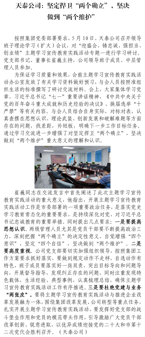 天泰公司:堅(jiān)定捍衛(wèi)“兩個(gè)確立”,堅(jiān)決做到“兩個(gè)維護(hù)”