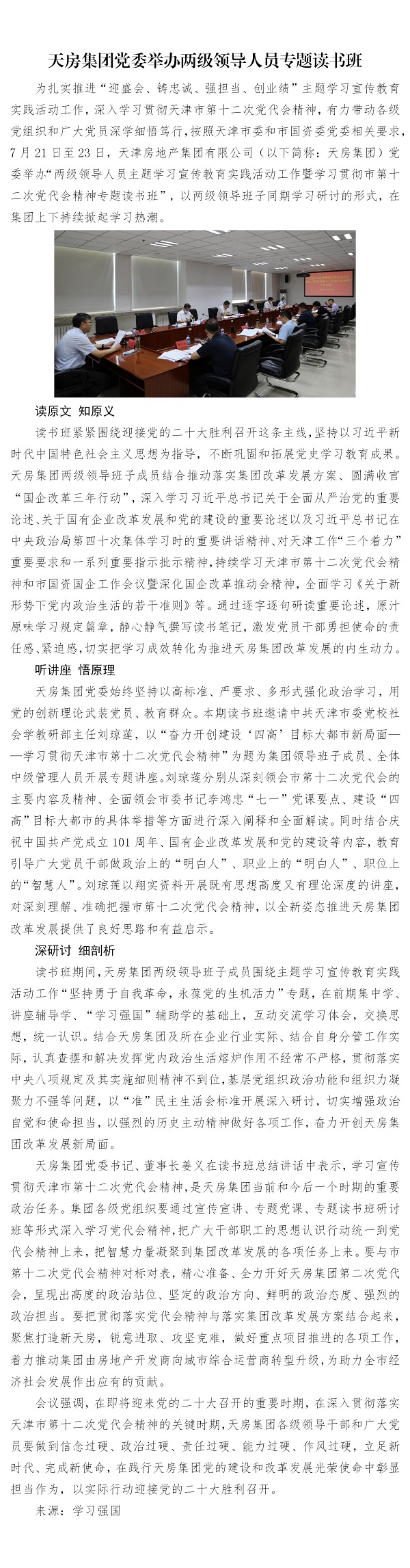 天房集團(tuán)黨委舉辦兩級(jí)領(lǐng)導(dǎo)人員專題讀書班