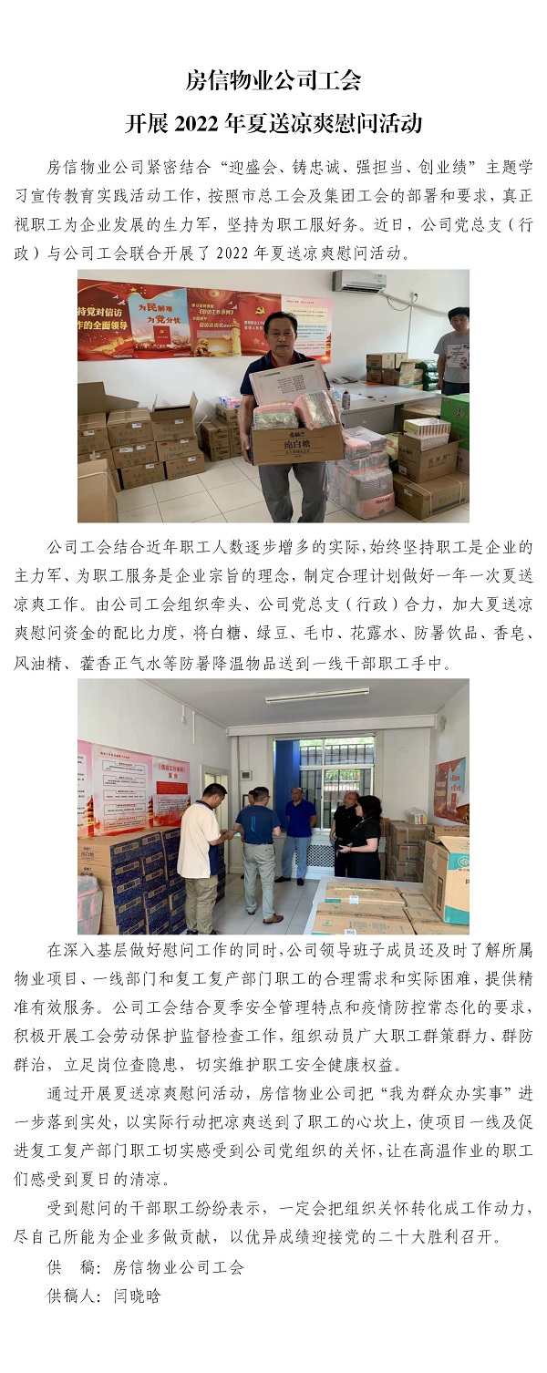 房信物業(yè)公司工會(huì)開展2022年夏送涼爽慰問活動(dòng)