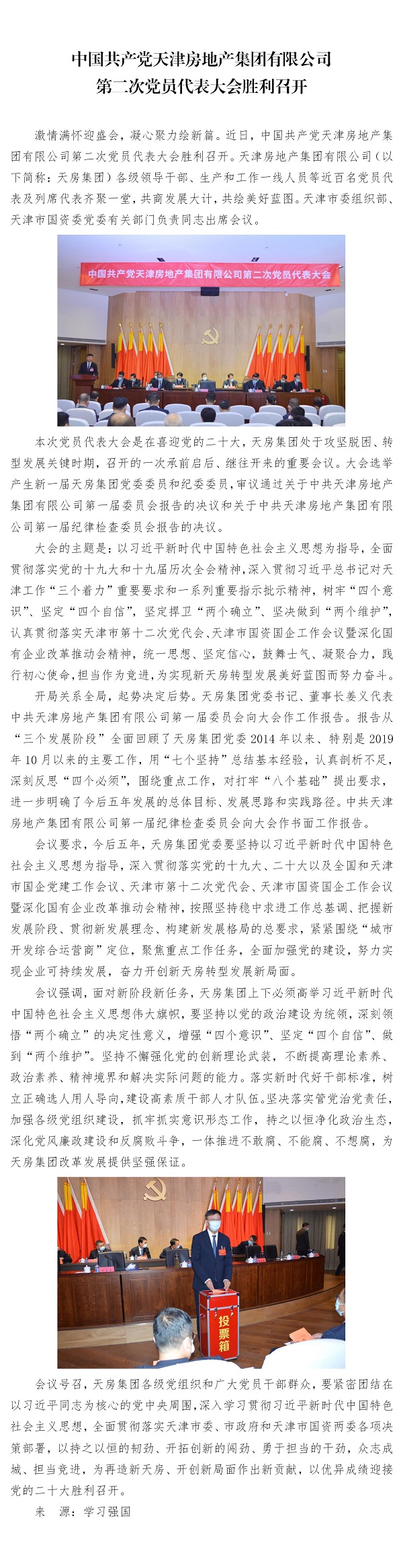 中國(guó)共產(chǎn)黨天津房地產(chǎn)集團(tuán)有限公司第二次黨員代表大會(huì)勝利召開(kāi)