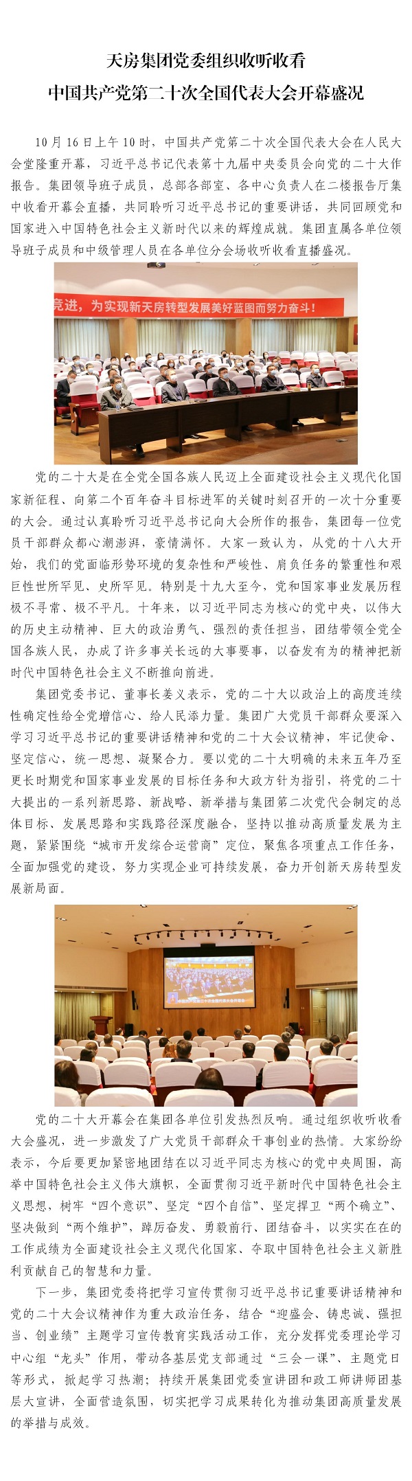 天房集團(tuán)黨委組織收聽收看中國(guó)共產(chǎn)黨第二十次全國(guó)代表大會(huì)開幕盛況