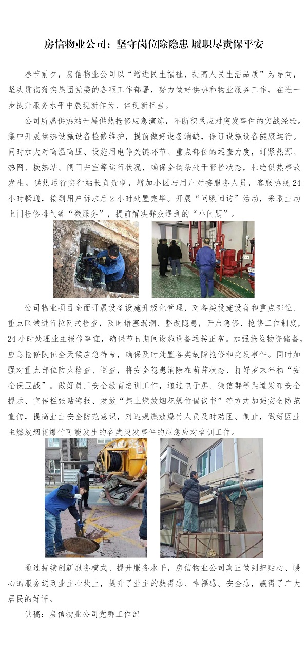 房信物業(yè)公司:堅(jiān)守崗位除隱患 履職盡責(zé)保平安