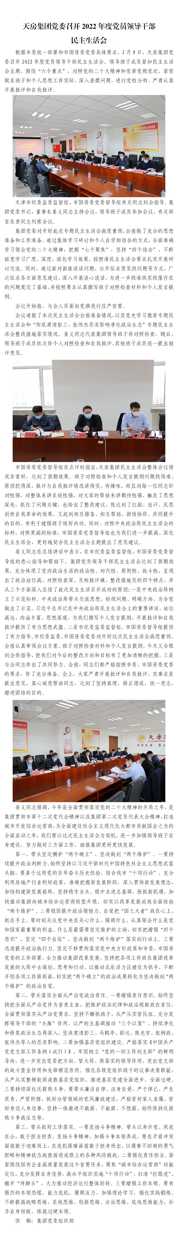 天房集團黨委召開2022年度黨員領(lǐng)導(dǎo)干部民主生活會
