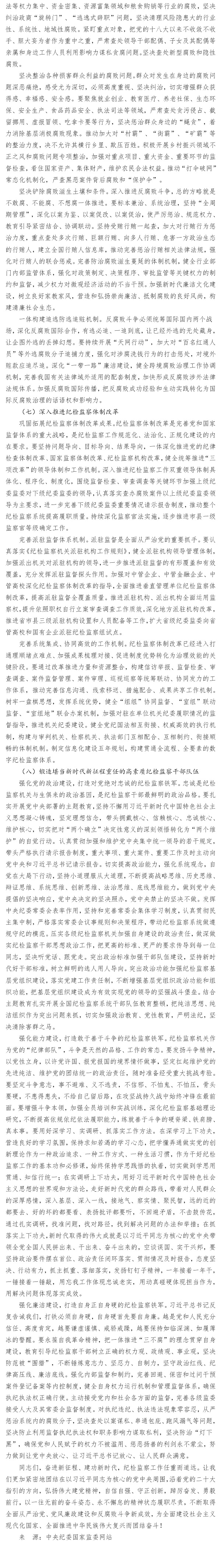 在中國共產(chǎn)黨第二十屆中央紀(jì)律檢查委員會第二次全體會議上的工作報告