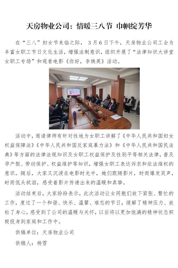 天房物業(yè)公司:情暖三八節(jié) 巾幗綻芳華