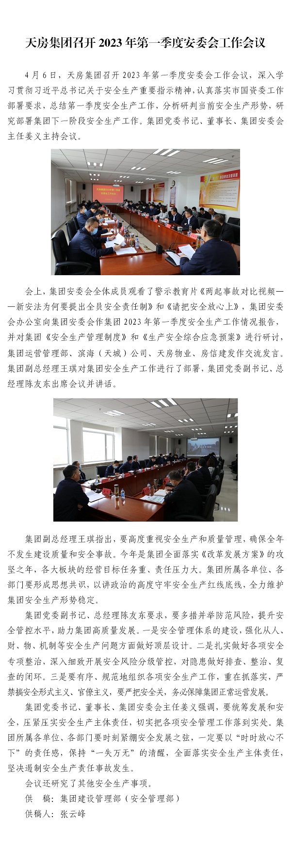 天房集團召開2023年第一季度安委會工作會議