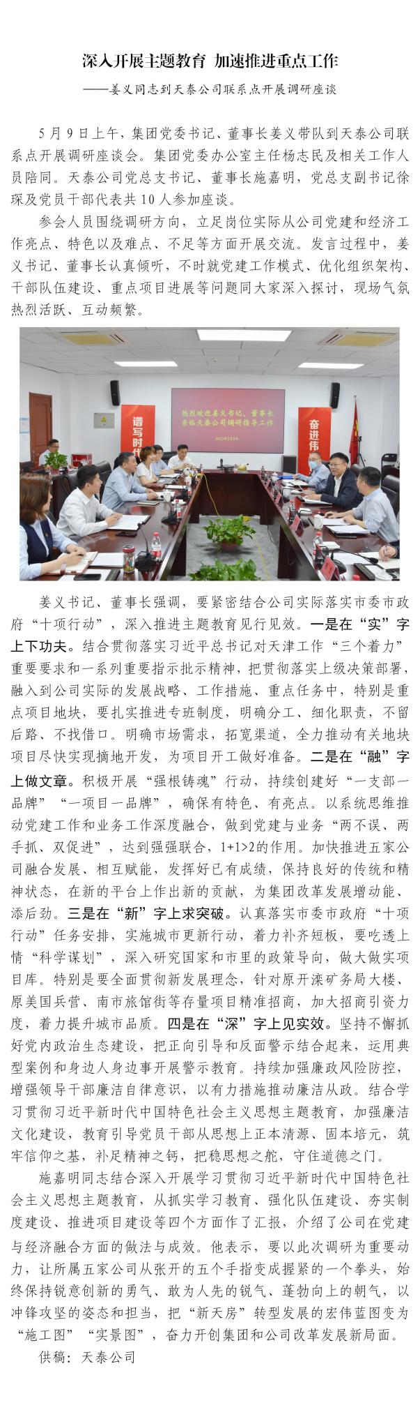 姜義同志到天泰公司聯(lián)系點開展調(diào)研座談