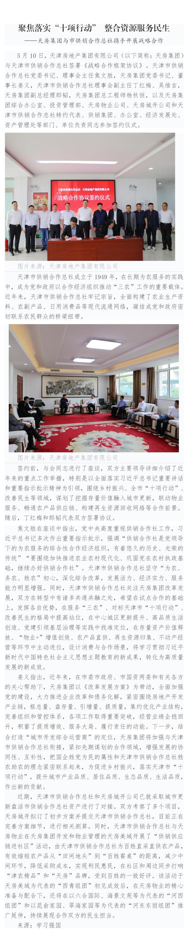 天房集團(tuán)與市供銷合作總社攜手開展戰(zhàn)略合作