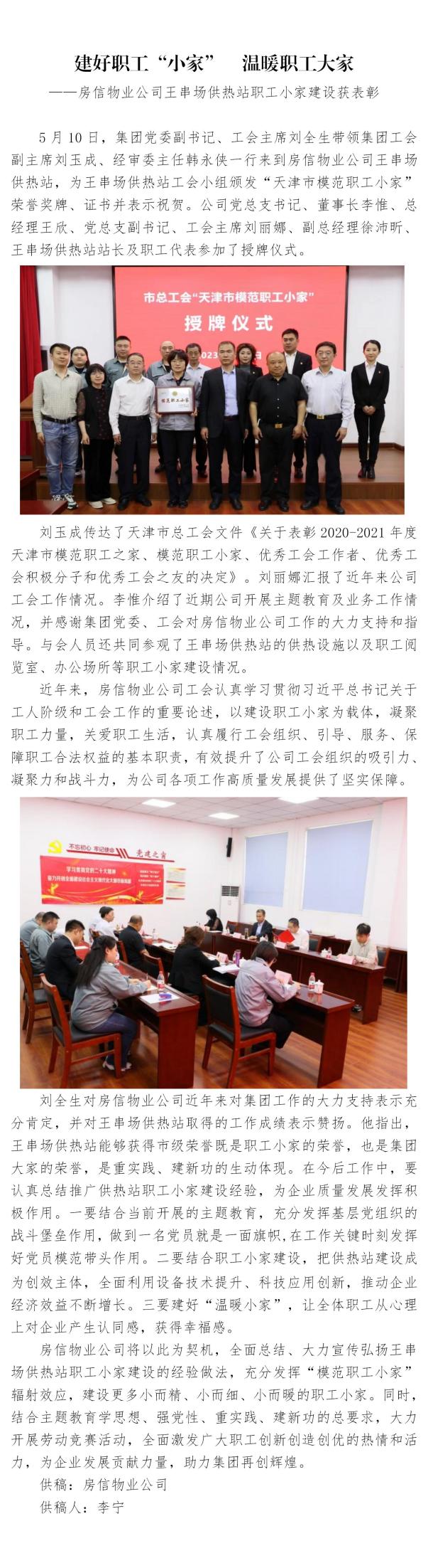 房信物業(yè)公司王串場供熱站職工小家建設(shè)獲表彰