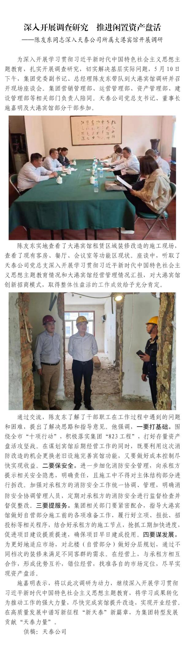 陳友東同志深入天泰公司所屬大港賓館開展調(diào)研