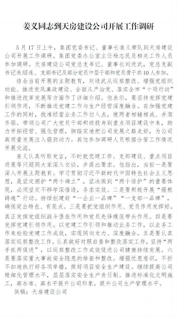 姜義同志到天房建設(shè)公司開展工作調(diào)研