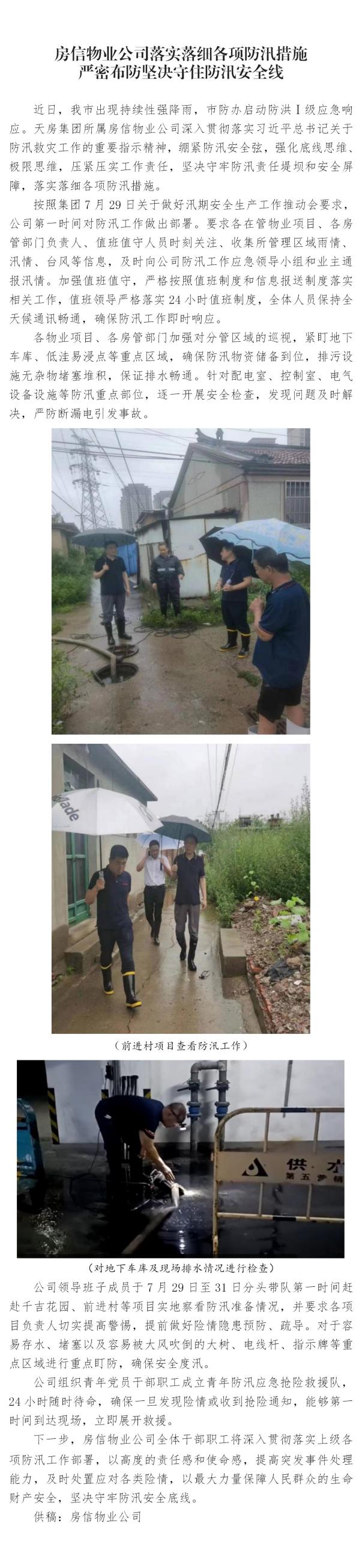 房信物業(yè)公司落實落細各項防汛措施 嚴密布防堅決守住防汛安全線