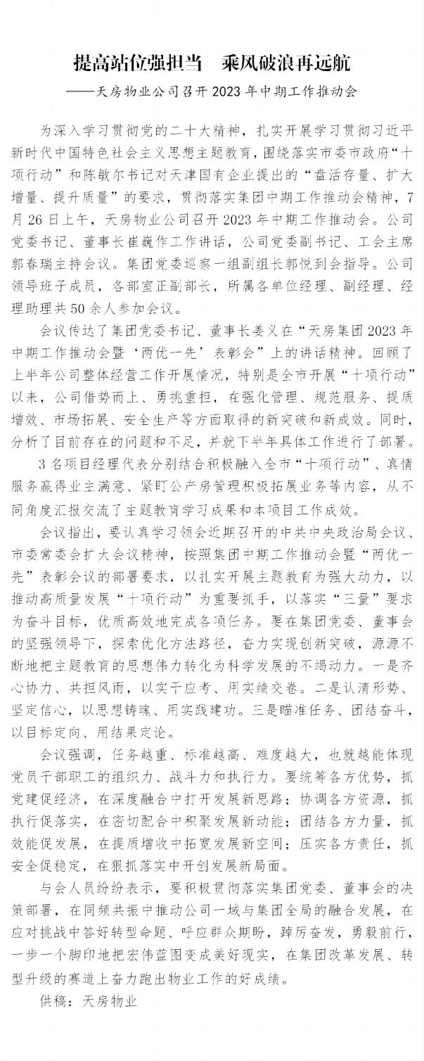 天房物業(yè)公司召開2023年中期工作推動會