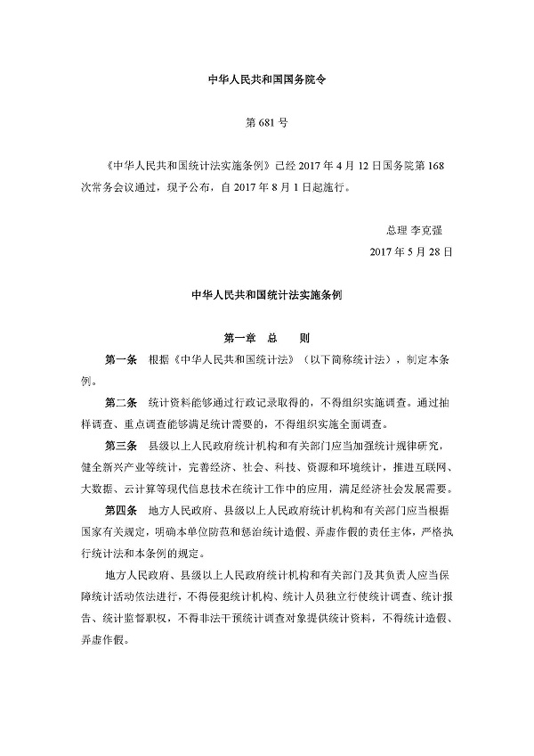 中華人民共和國統(tǒng)計法實施條例