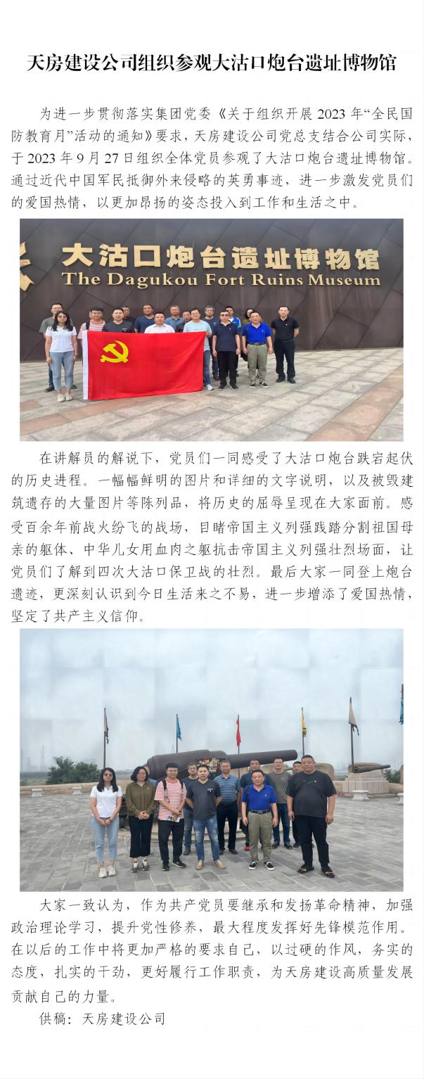 天房建設(shè)公司組織參觀大沽口炮臺(tái)遺址博物館