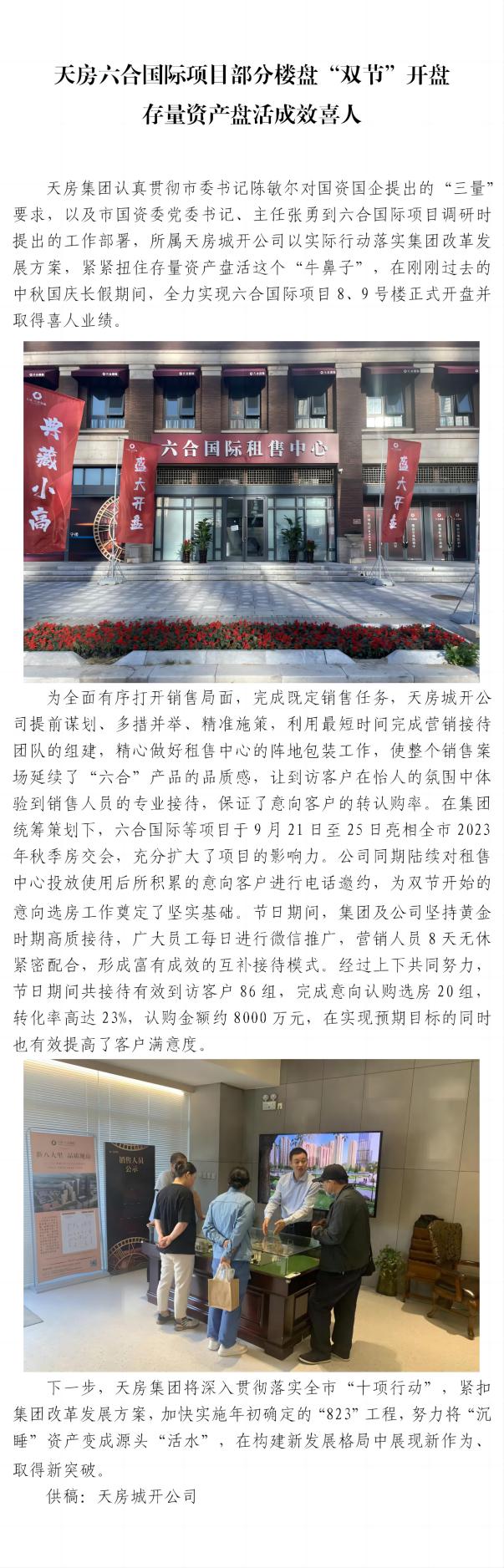 天房六合國(guó)際項(xiàng)目部分樓盤“雙節(jié)”開(kāi)盤 存量資產(chǎn)盤活成效喜人