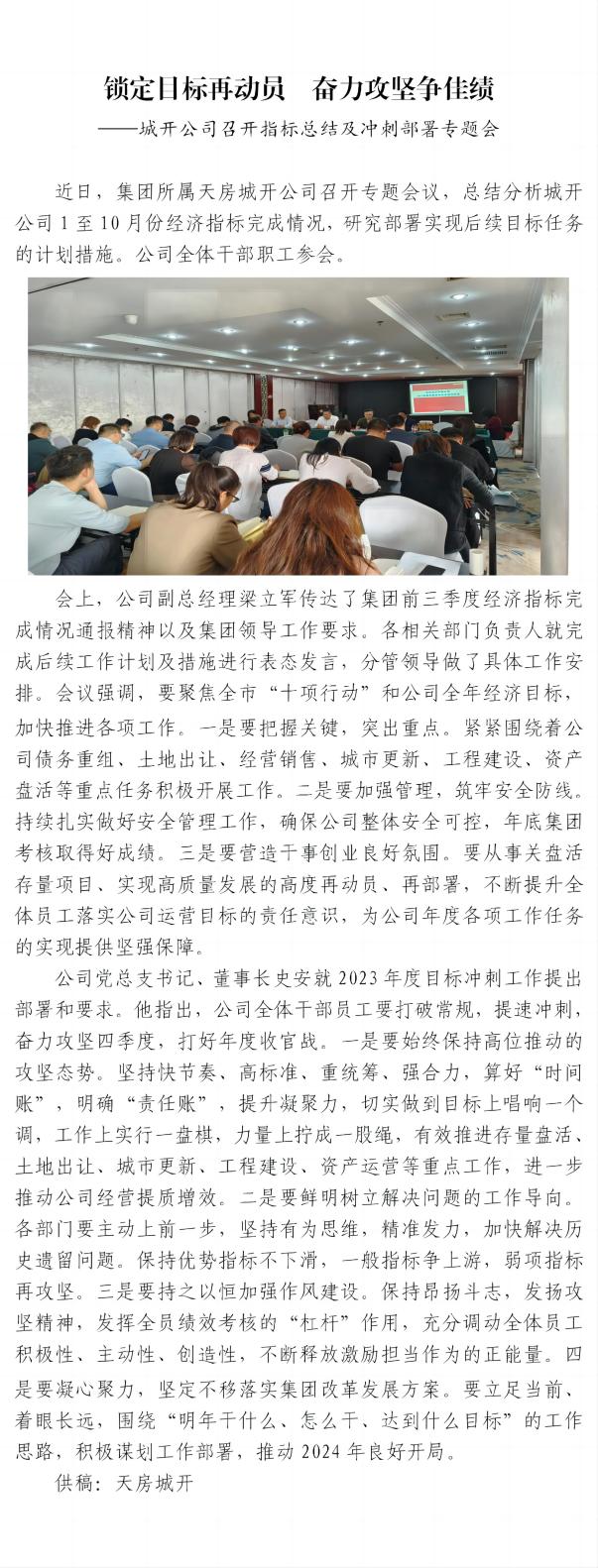 城開公司召開指標總結及沖刺部署專題會