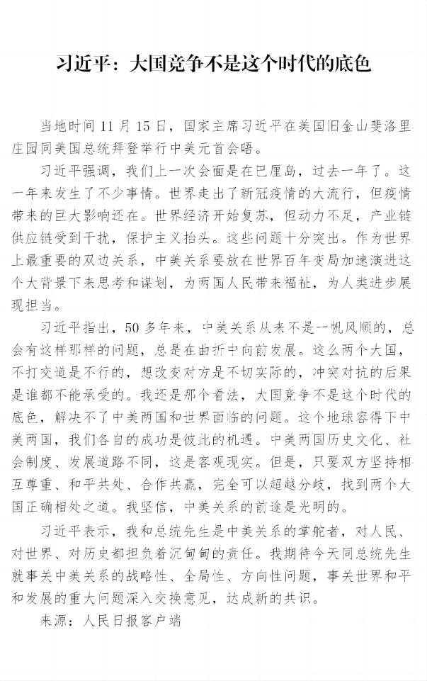 習(xí)近平:大國(guó)競(jìng)爭(zhēng)不是這個(gè)時(shí)代的底色