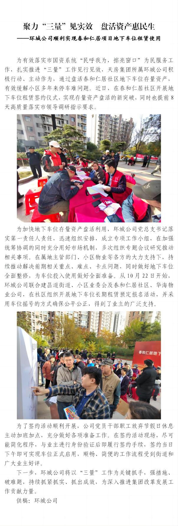 環(huán)城公司順利實(shí)現(xiàn)春和仁居項(xiàng)目地下車位租賃使用