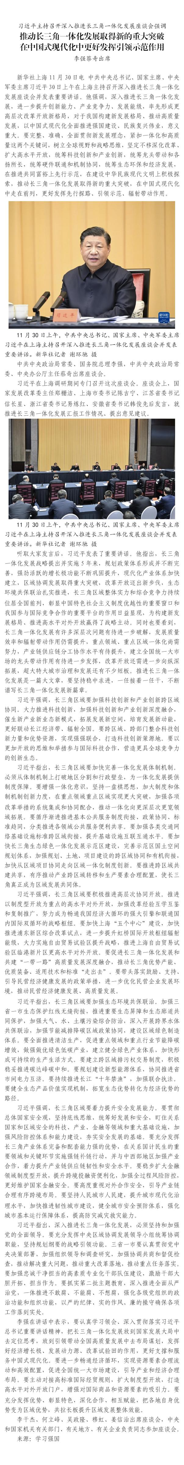 習近平主持召開深入推進長三角一體化發(fā)展座談會強調