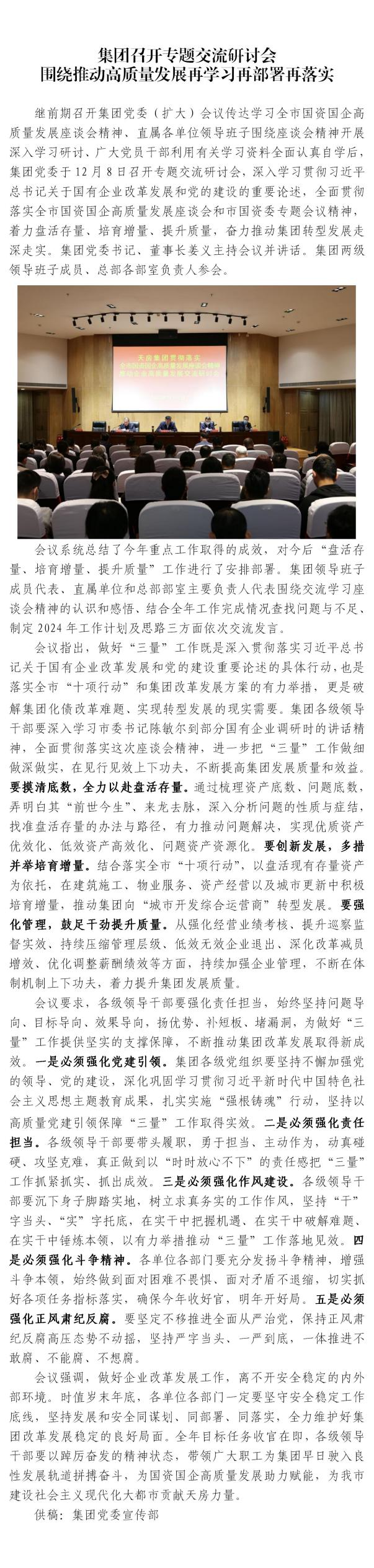 集團召開專題交流研討會 圍繞推動高質(zhì)量發(fā)展再學習再部署再落實