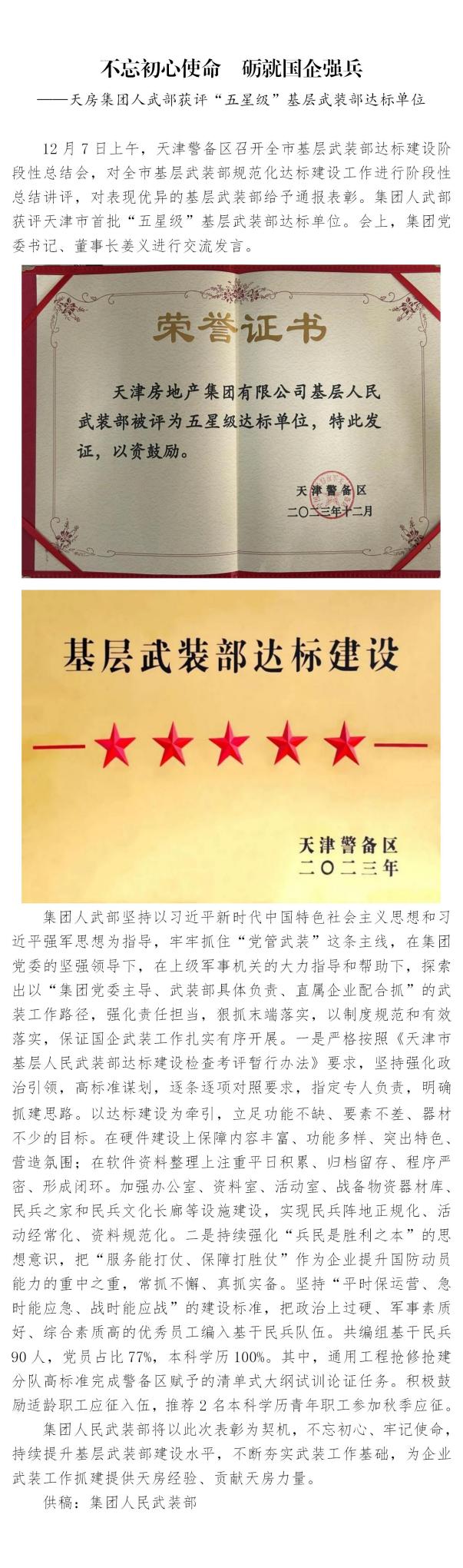 天房集團(tuán)人武部獲評(píng)“五星級(jí)”基層武裝部達(dá)標(biāo)單位