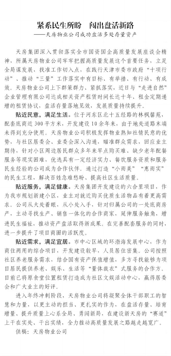 天房物業(yè)公司成功盤活多處存量資產(chǎn)
