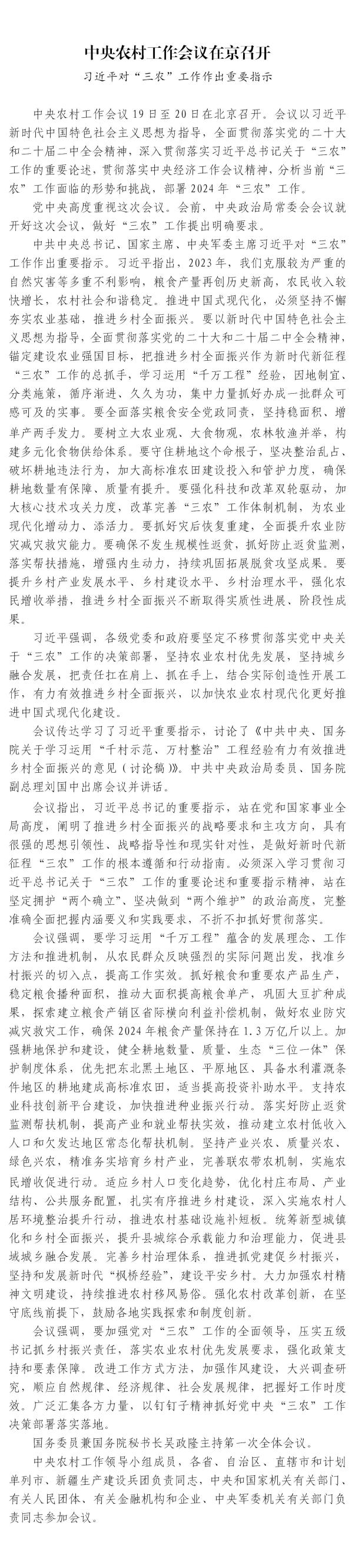 習(xí)近平對(duì)“三農(nóng)”工作作出重要指示