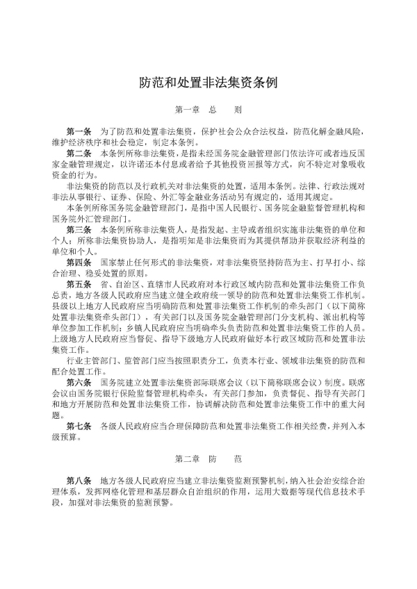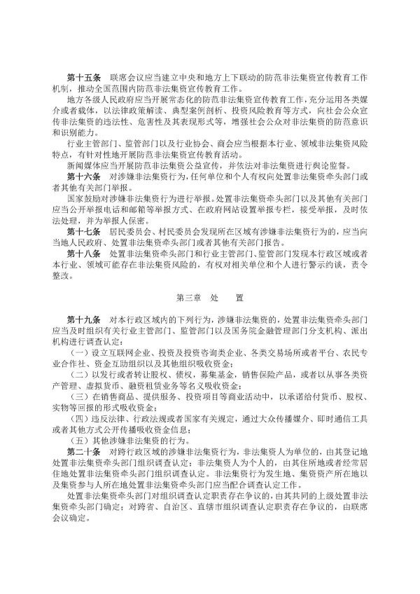 防范和處置非法集資條例