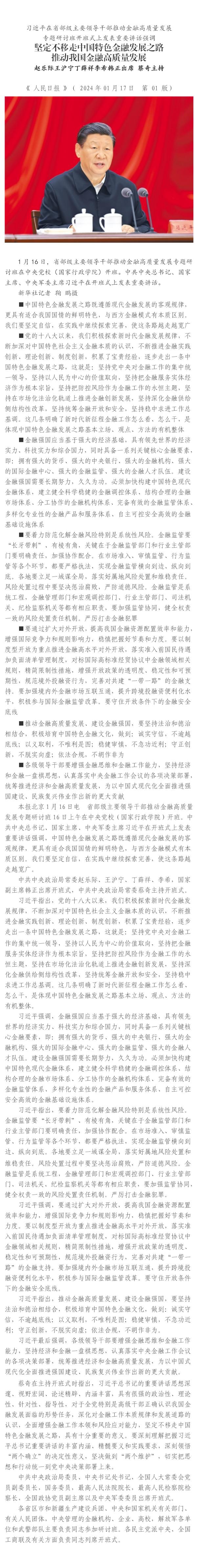 習近平在省部級主要領(lǐng)導干部推動金融高質(zhì)量發(fā)展專題研討班開班式上發(fā)表重要講話強調(diào)