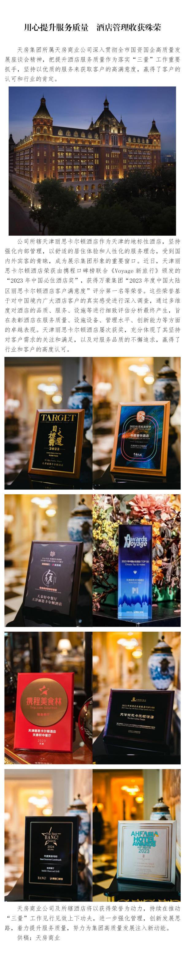 天房商業(yè)公司:用心提升服務(wù)質(zhì)量 酒店管理收獲殊榮