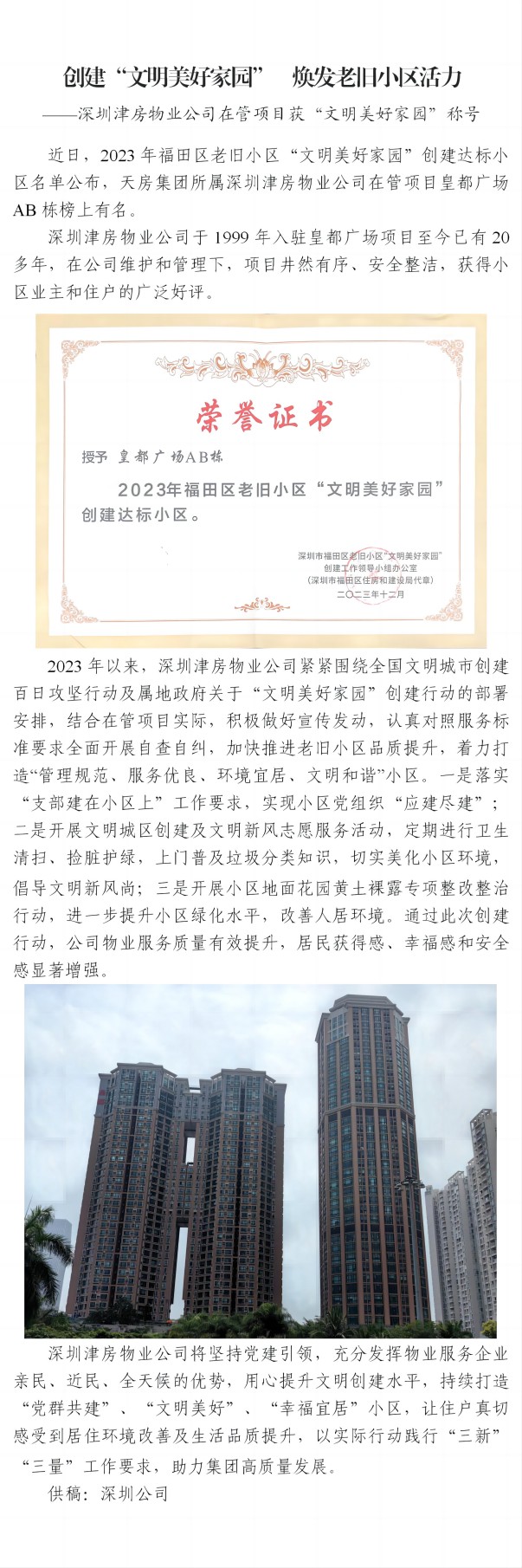 深圳公司:創(chuàng)建“文明美好家園” 煥發(fā)老舊小區(qū)活力