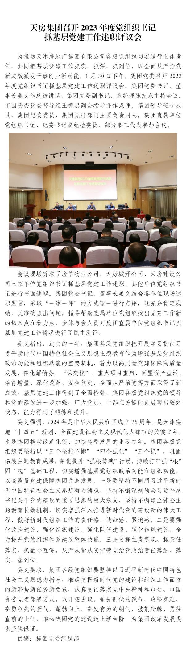 天房集團召開2023年度黨組織書記抓基層黨建工作述職評議會
