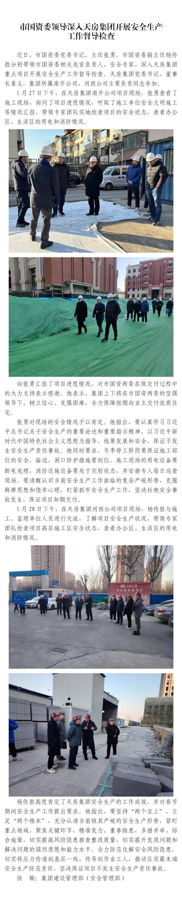 市國資委領(lǐng)導(dǎo)深入天房集團(tuán)開展安全生產(chǎn) 工作督導(dǎo)檢查