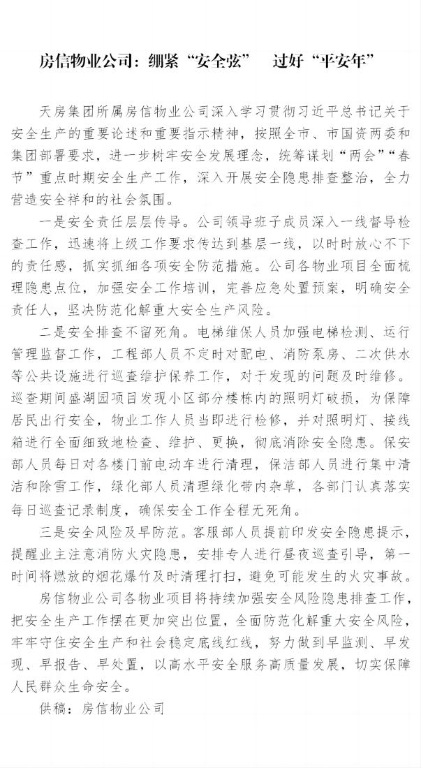 房信物業(yè)公司:繃緊“安全弦” 過好“平安年”