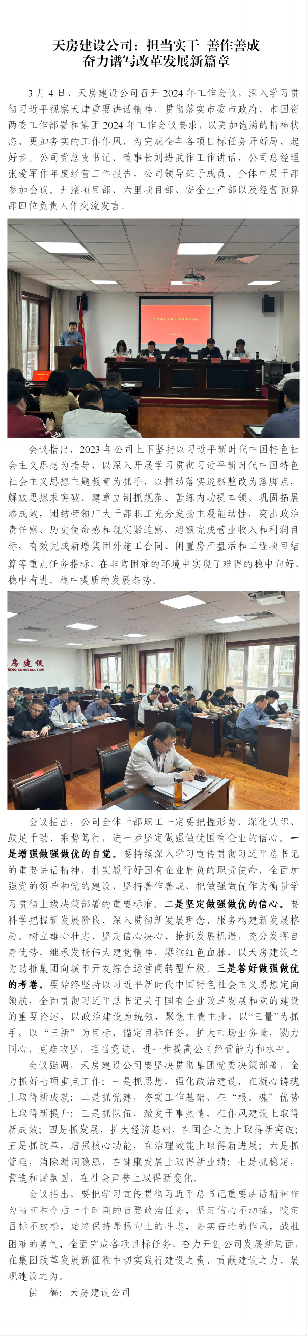 天房建設(shè)公司:擔(dān)當(dāng)實干 善作善成 奮力譜寫改革發(fā)展新篇章