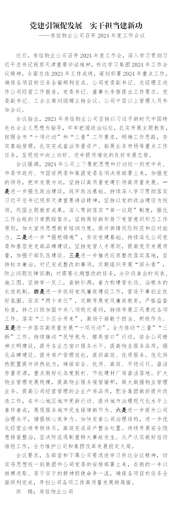 黨建引領(lǐng)促發(fā)展 實(shí)干擔(dān)當(dāng)建新功 ——房信物業(yè)公司召開(kāi)2024年度工作會(huì)議