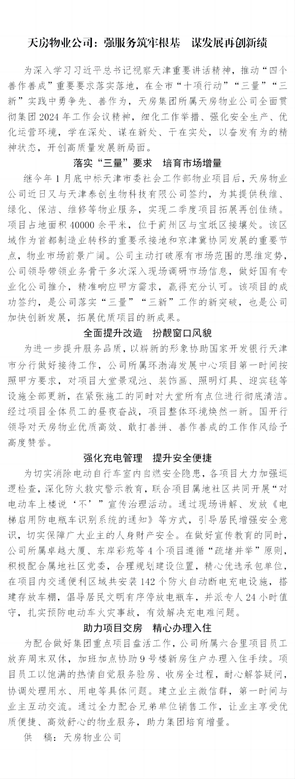 天房物業(yè)公司:強服務筑牢根基 謀發(fā)展再創(chuàng)新績