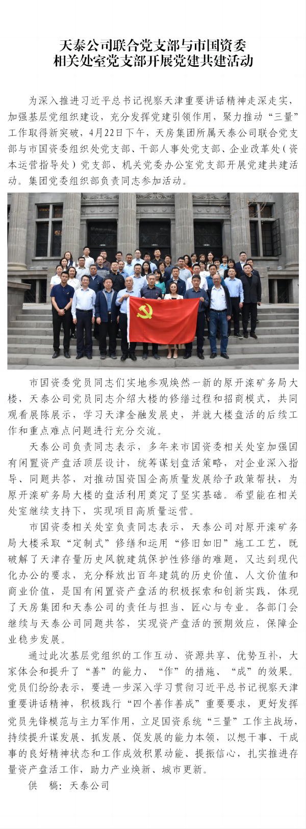 天泰公司聯(lián)合黨支部與市國(guó)資委 相關(guān)處室黨支部開(kāi)展黨建共建活動(dòng)