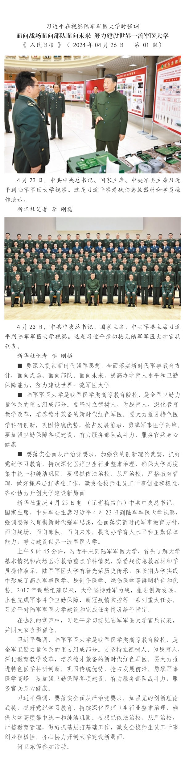 習(xí)近平在視察陸軍軍醫(yī)大學(xué)時強調(diào)