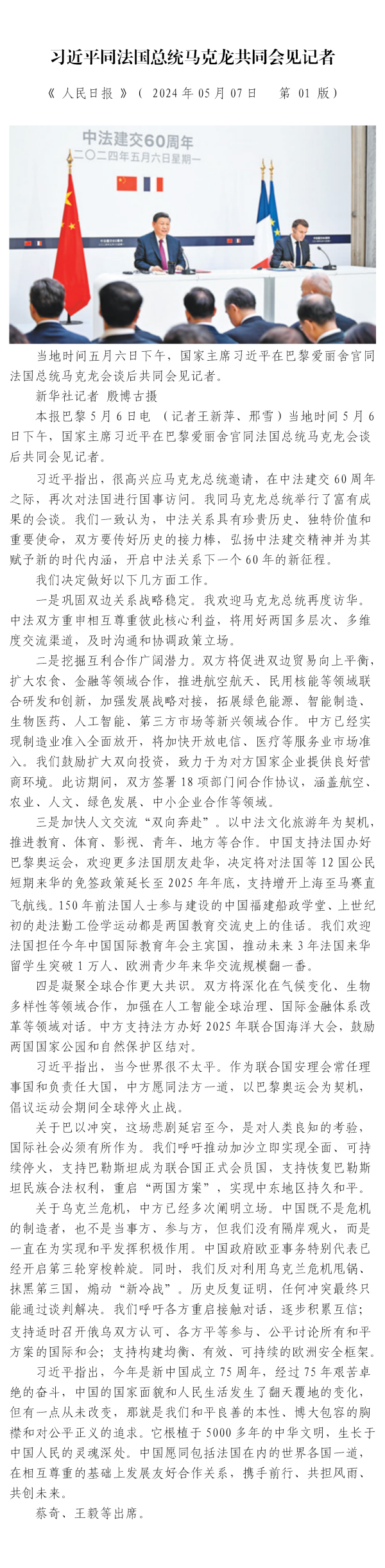 習(xí)近平同法國總統(tǒng)馬克龍共同會見記者