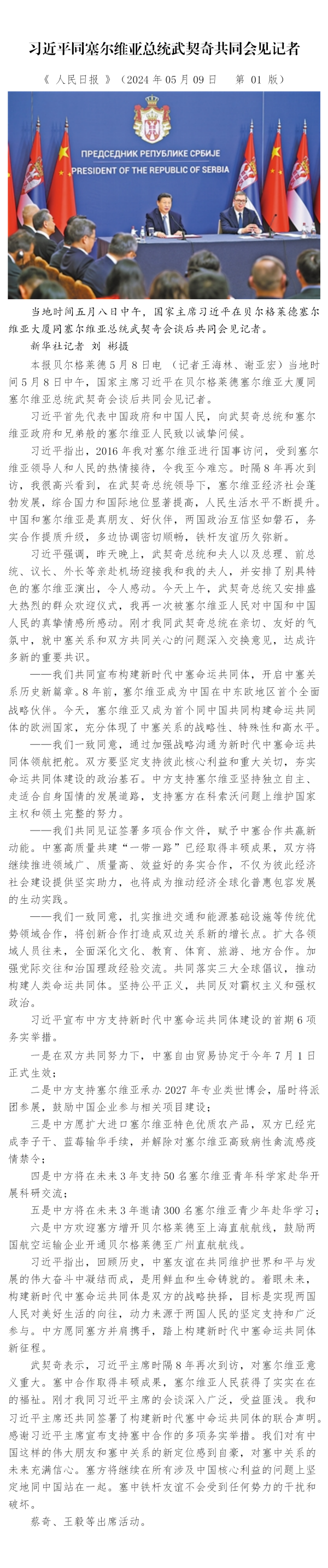 習(xí)近平同塞爾維亞總統(tǒng)武契奇共同會(huì)見記者