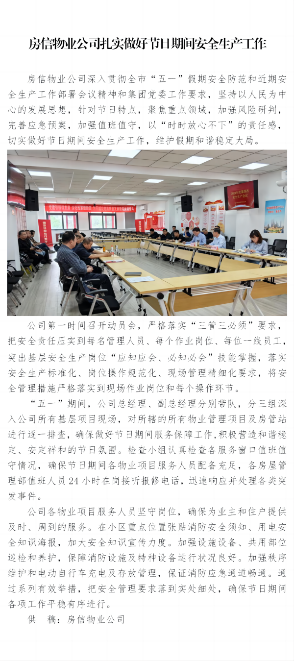 房信物業(yè)公司扎實(shí)做好節(jié)日期間安全生產(chǎn)工作